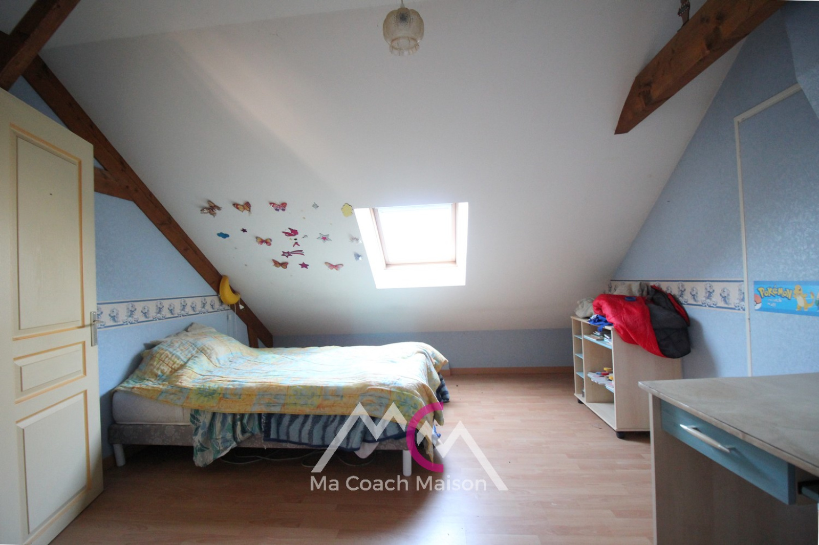 A l'étage, un palier dessert 2 chambres, une petite chambre idéale pour un bébé, un wc et un grenier pouvant être aménagé.