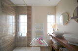 À l’étage, un palier dessert trois chambres avec de nombreux rangements, ainsi qu’une spacieuse salle de bains avec wc.