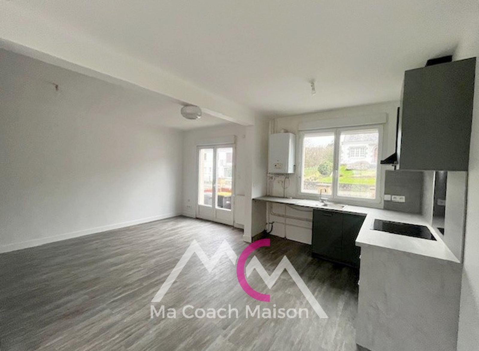 Sur une parcelle d'environ 180m², la maison se compose au rez-de-chaussée, d'une entrée donnant sur une pièce de vie avec espace salon-séjour et d'une cuisine aménagée ouverte.