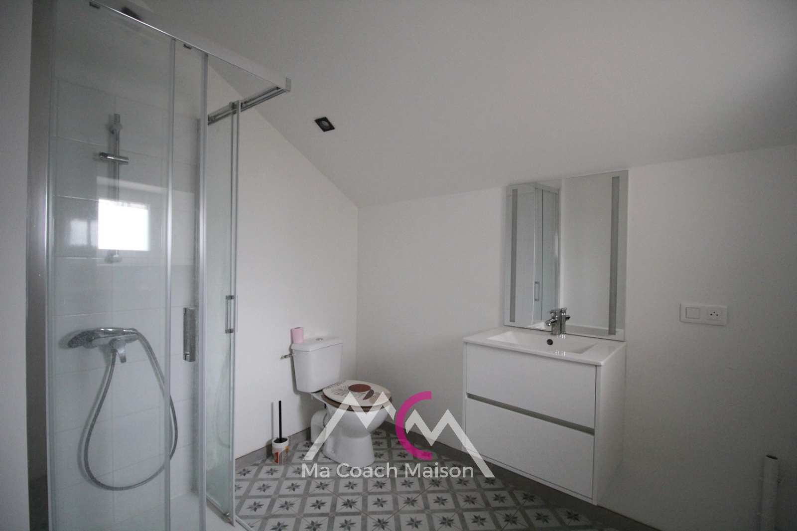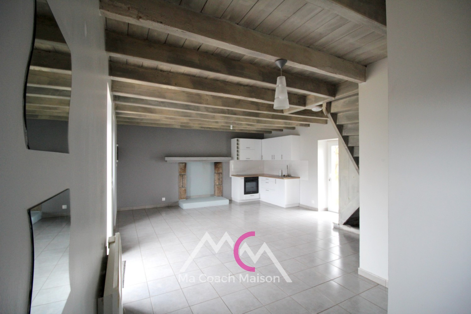 La maison rénovée comprend au rez-de-chaussée : une pièce de vie traversante avec cuisine aménagée et semi-équipée, une chambre de 12,50m² et une salle d'eau avec wc.
