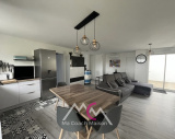 Le séjour, chaleureux et convivial, est agrémenté d’un poêle à pellets et s’ouvre sur une cuisine moderne, aménagée et entièrement équipée.