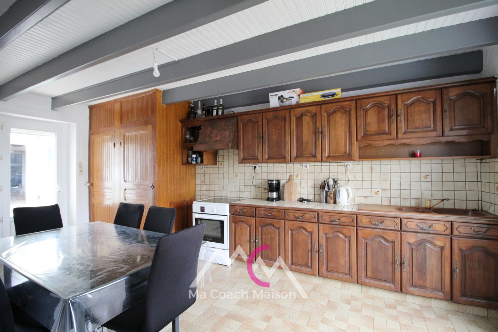 Au rez-de-chaussée, la maison comprend : un sas d'entrée, une spacieuse cuisine aménagée, un séjour chaleureux avec un poêle à granulés, un wc.